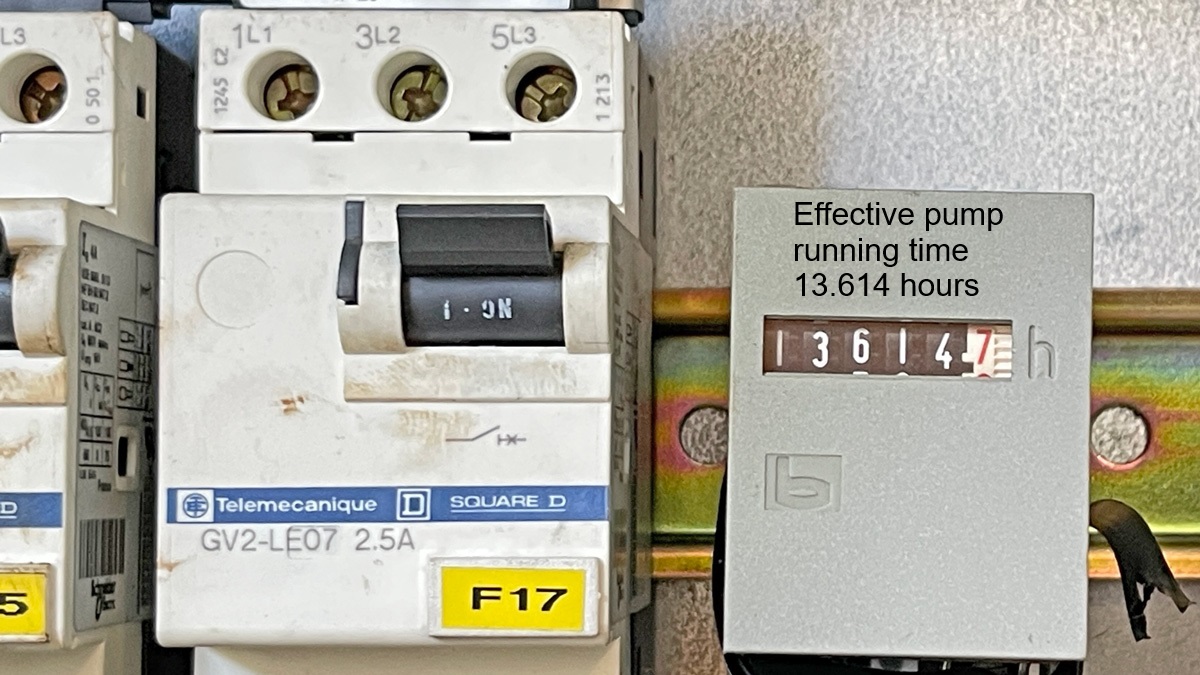 Effective pump running time 13,614 hours, as of October 2025 |