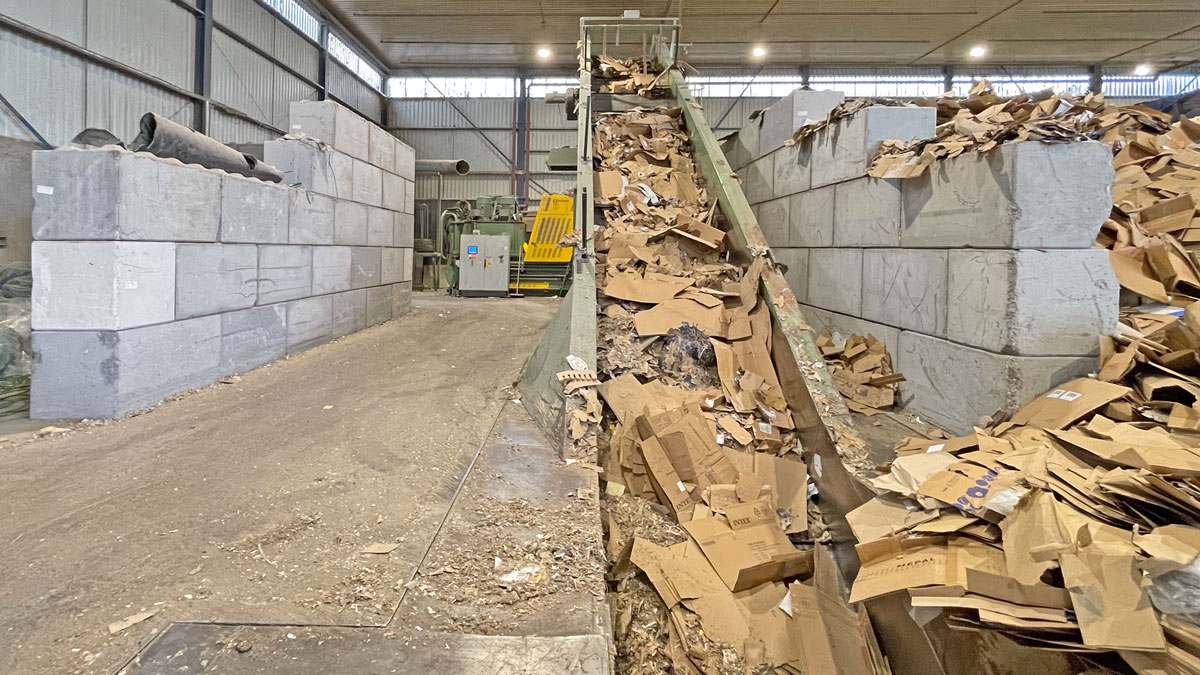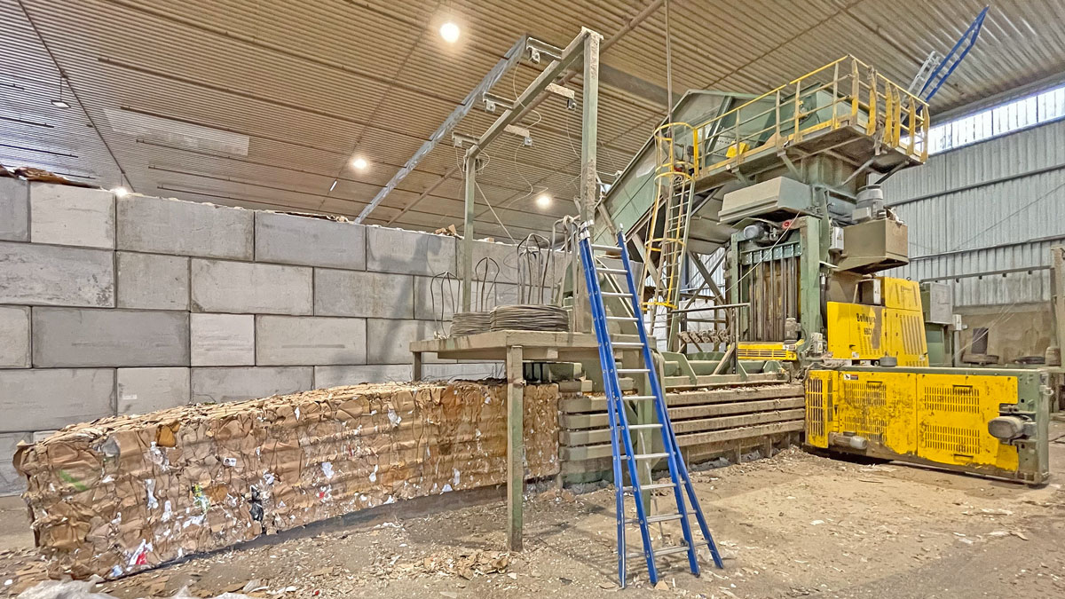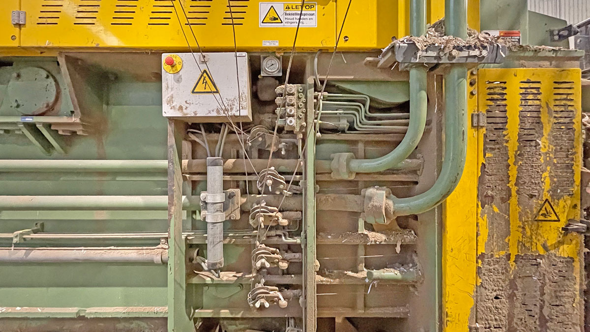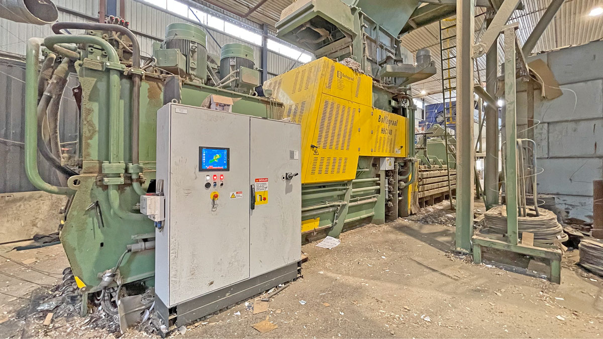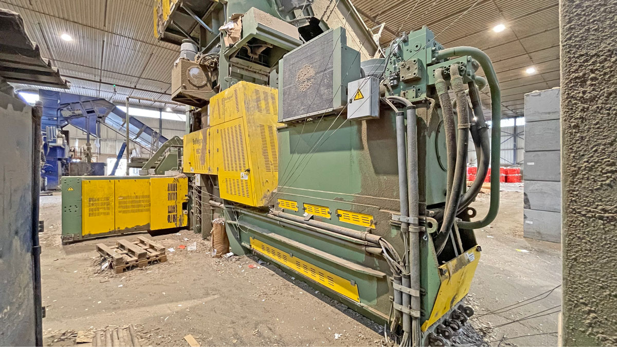 Baler Bollegraaf, type HBC 140 K, 140 t pressing force, yoc 2012, only 18,593 operating hours, with 10-fold cross tying system and conveyors
