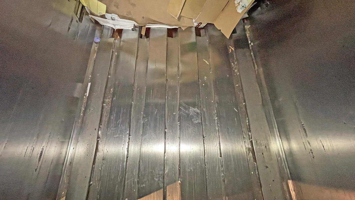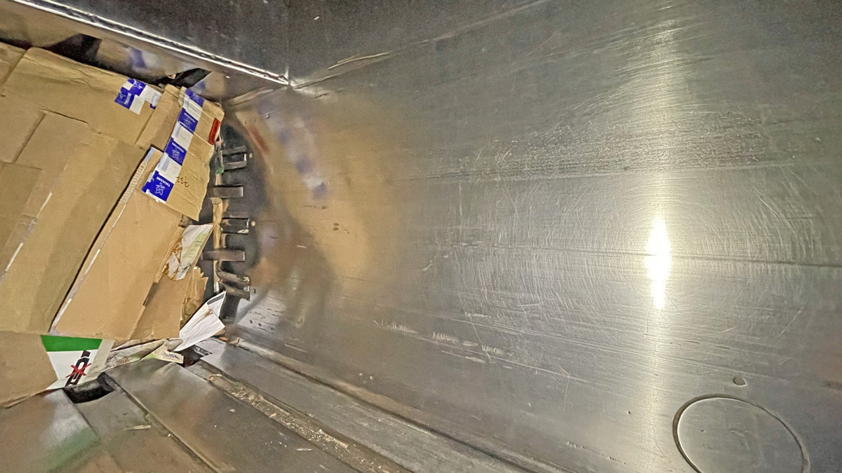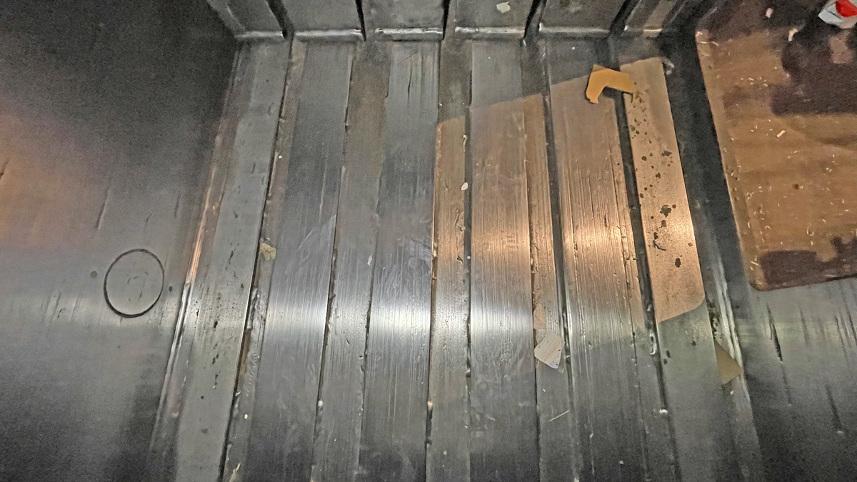 Wire entry marks on the floor passages welded shut and smoothed |