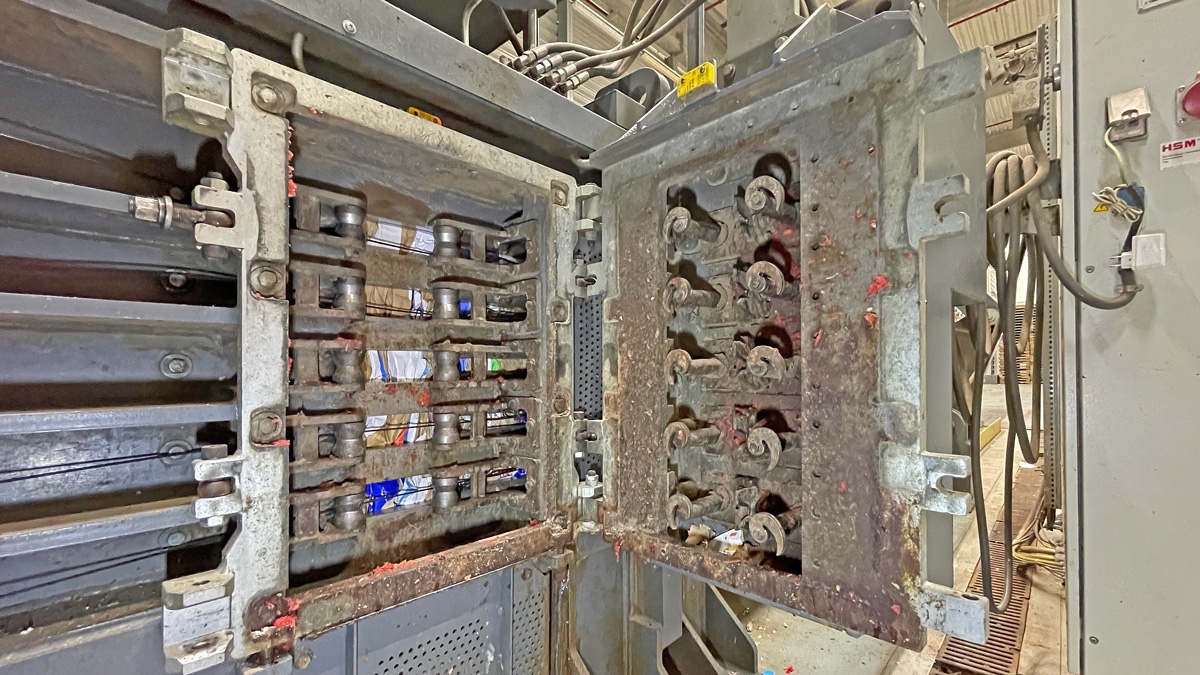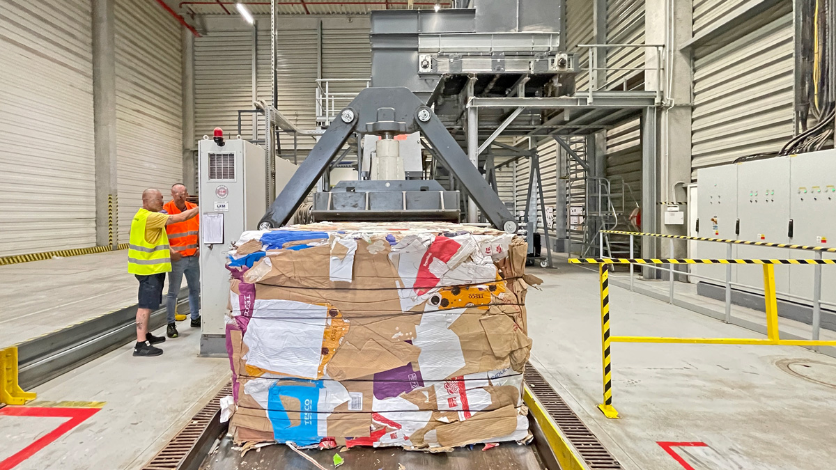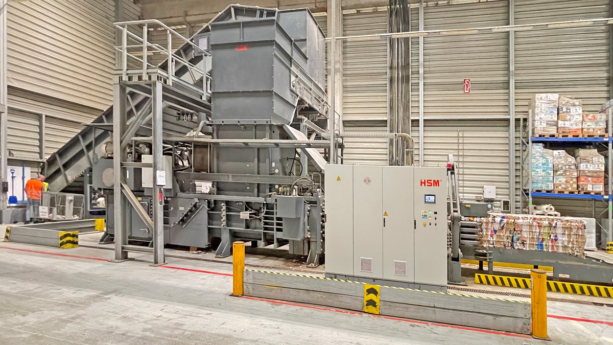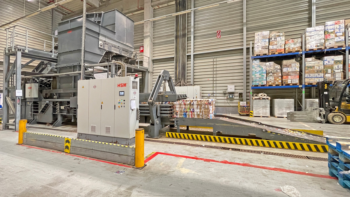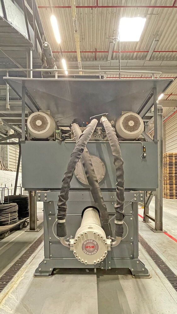 Baler HSM, type VK 8818 R-FU, 100 t pressing force, yoc 2015, only 19,750 operating hours, drive 2 x 45 kW (frequency-controlled), with complete conveyor technology