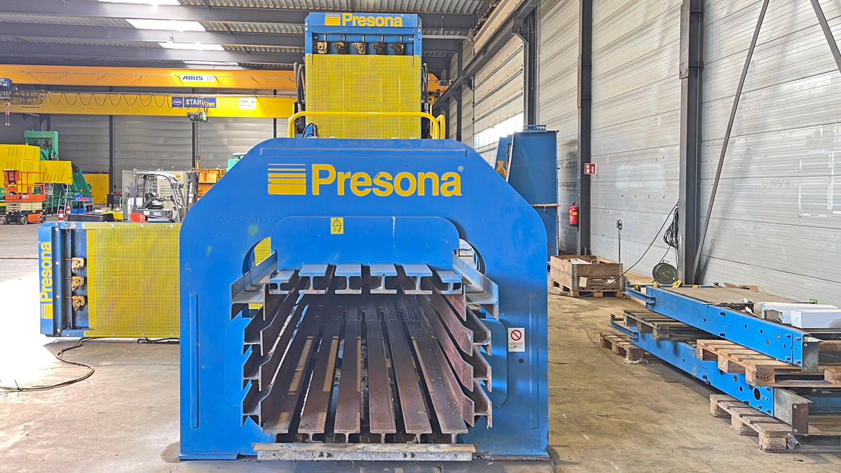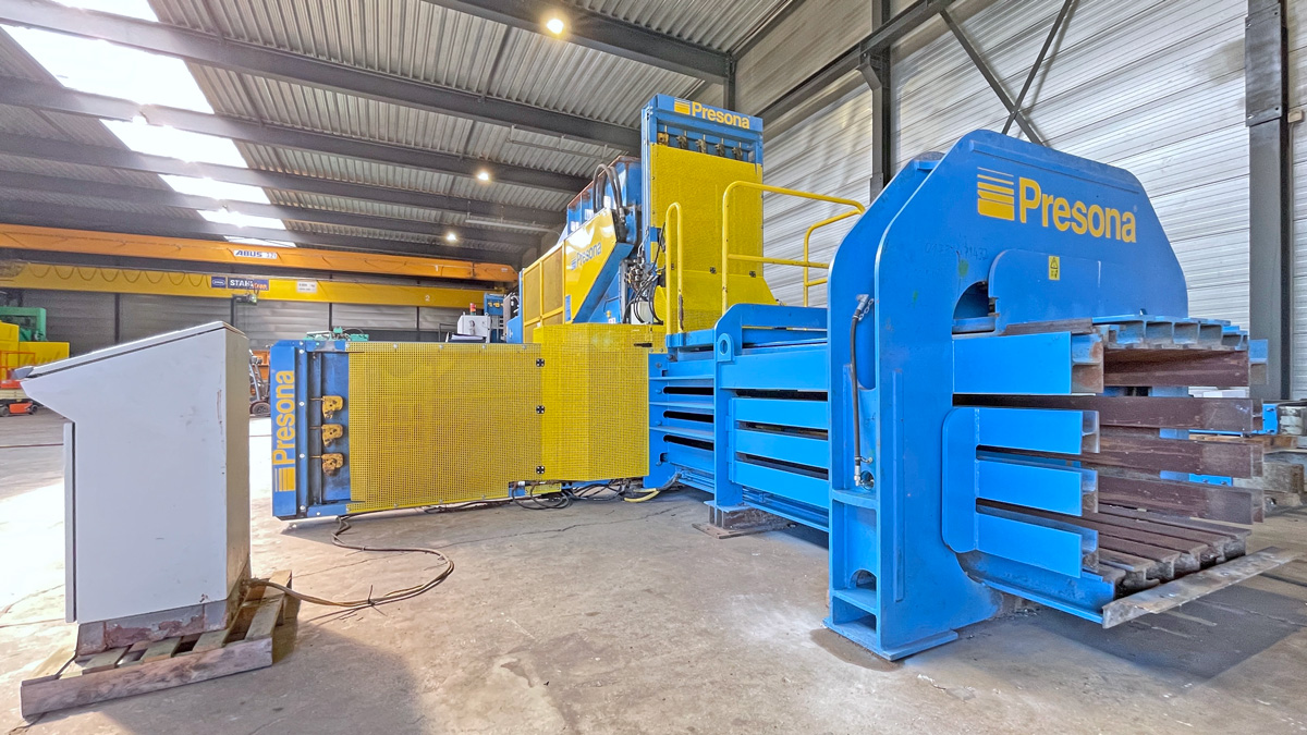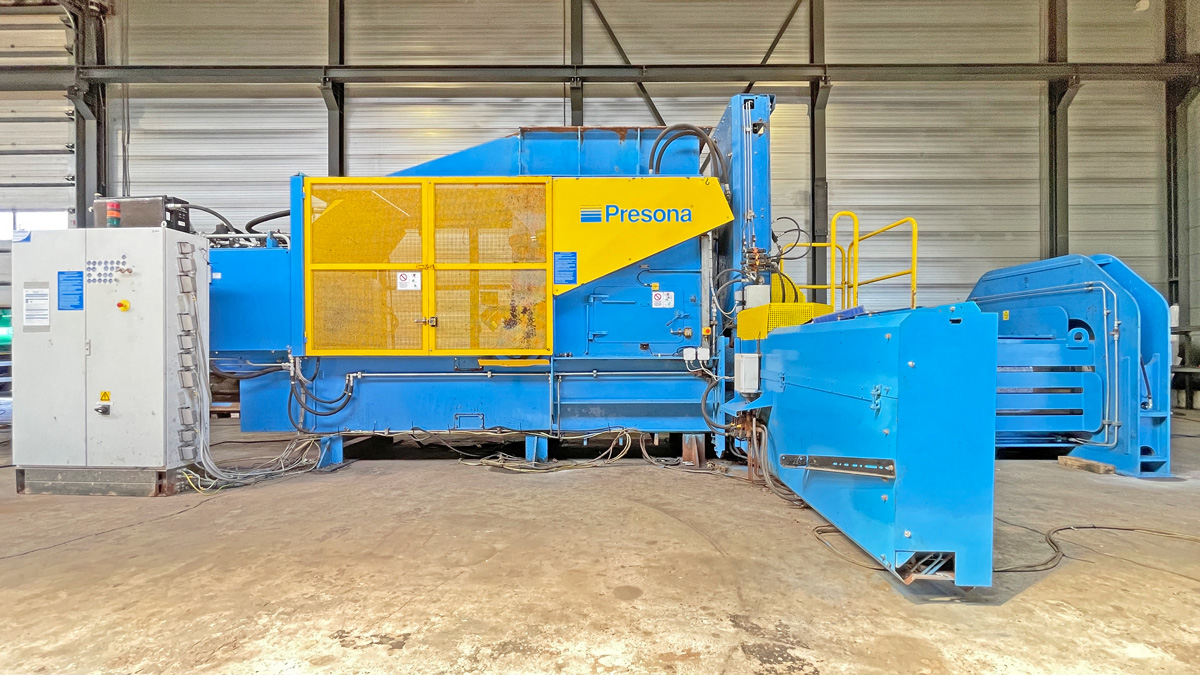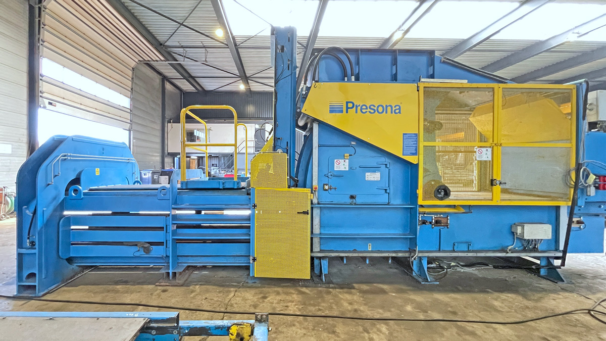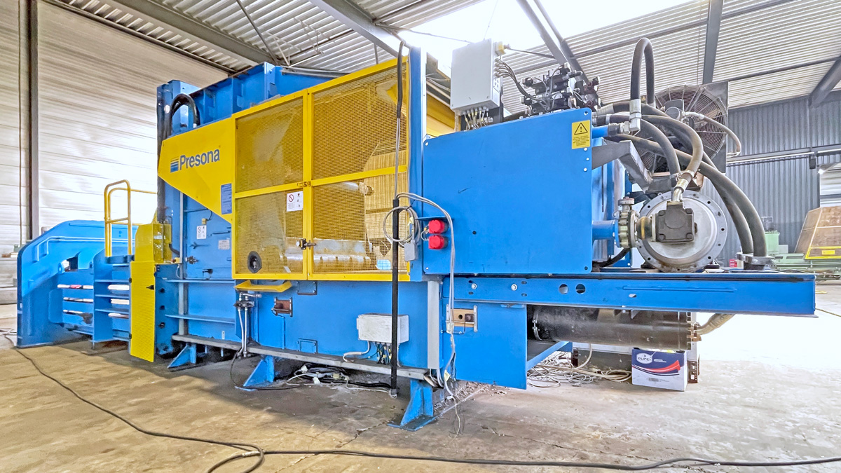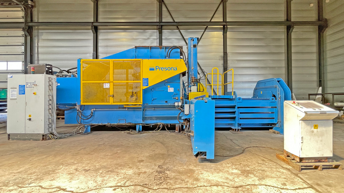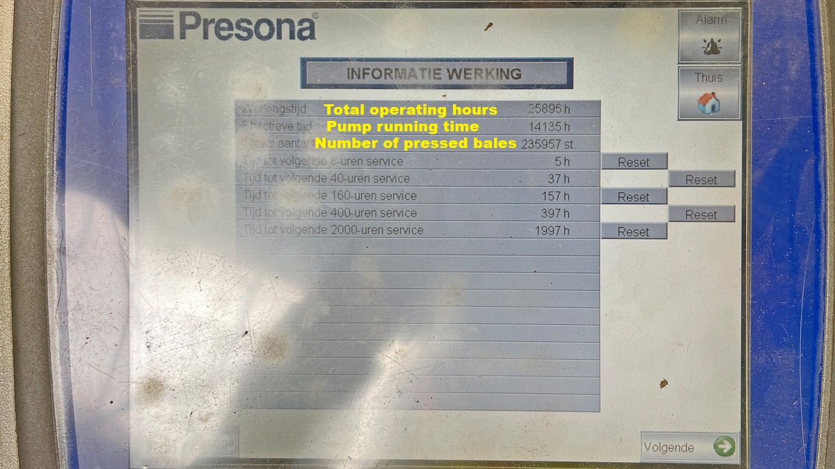Baler Presona, type LP 80 VHK1, 78 t pressing force, yoc 2014, only 25,8951 operating hours, only 14,135 h pump runtime, drive power 55 kW, with 8-fold cross tying system